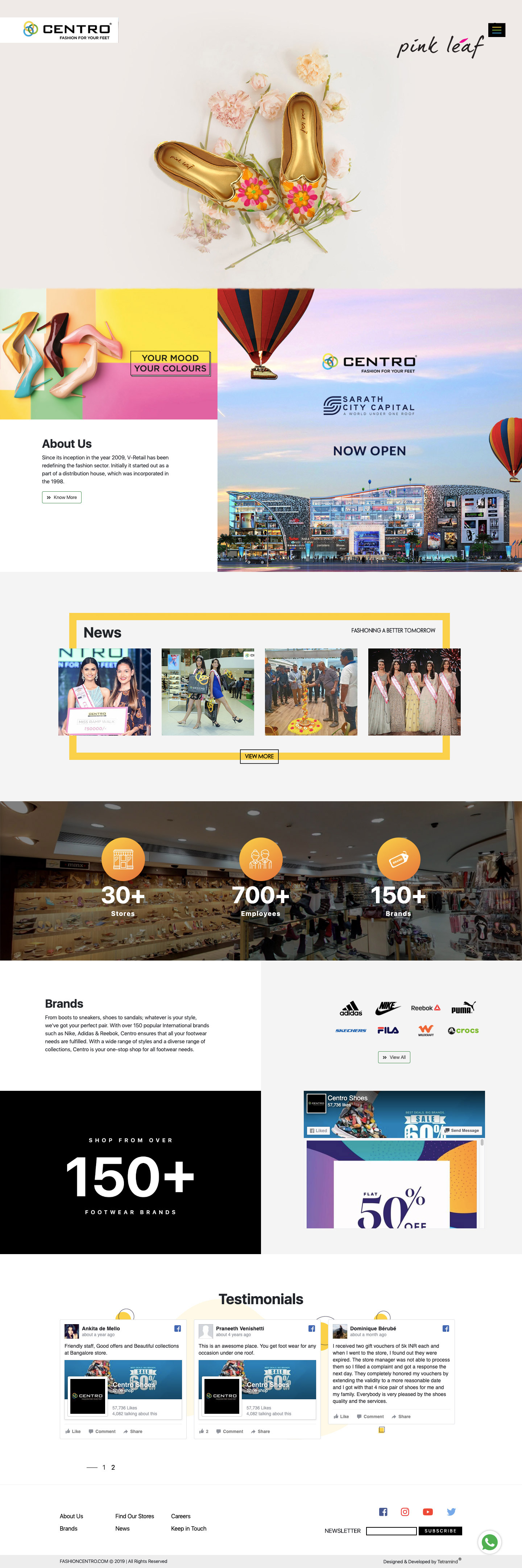 South India's Largest Footwear Destination, Centro partnered with us to build their brand website. With over 30 stores in South India, Centro needed a comprehensive website where their customers can check for the latest news, offers and contact details.